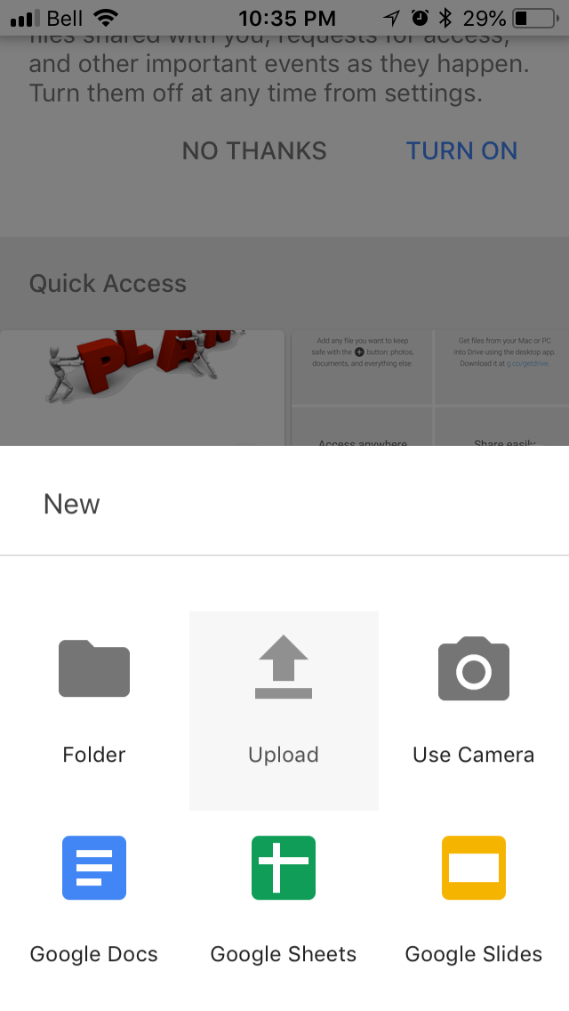 2. Click “New”, and select “File Upload” or “Folder Upload”